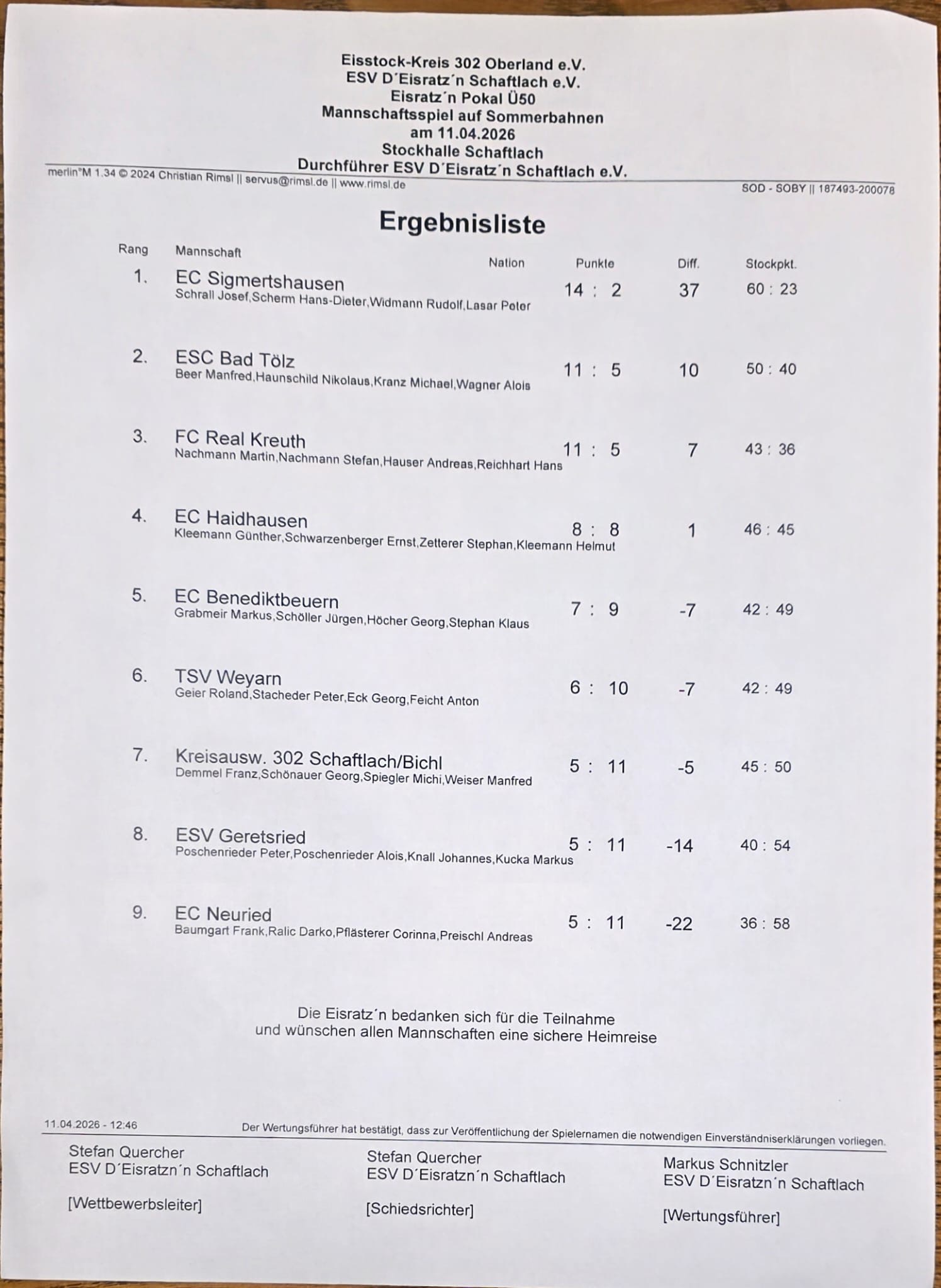 2025-04-12 Eisratz`n Schaftlach Freies Turnier: Platz 9