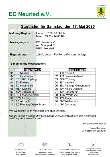 Am 17. Mai 2025 ist großer Turniertag beim EC Neuried.